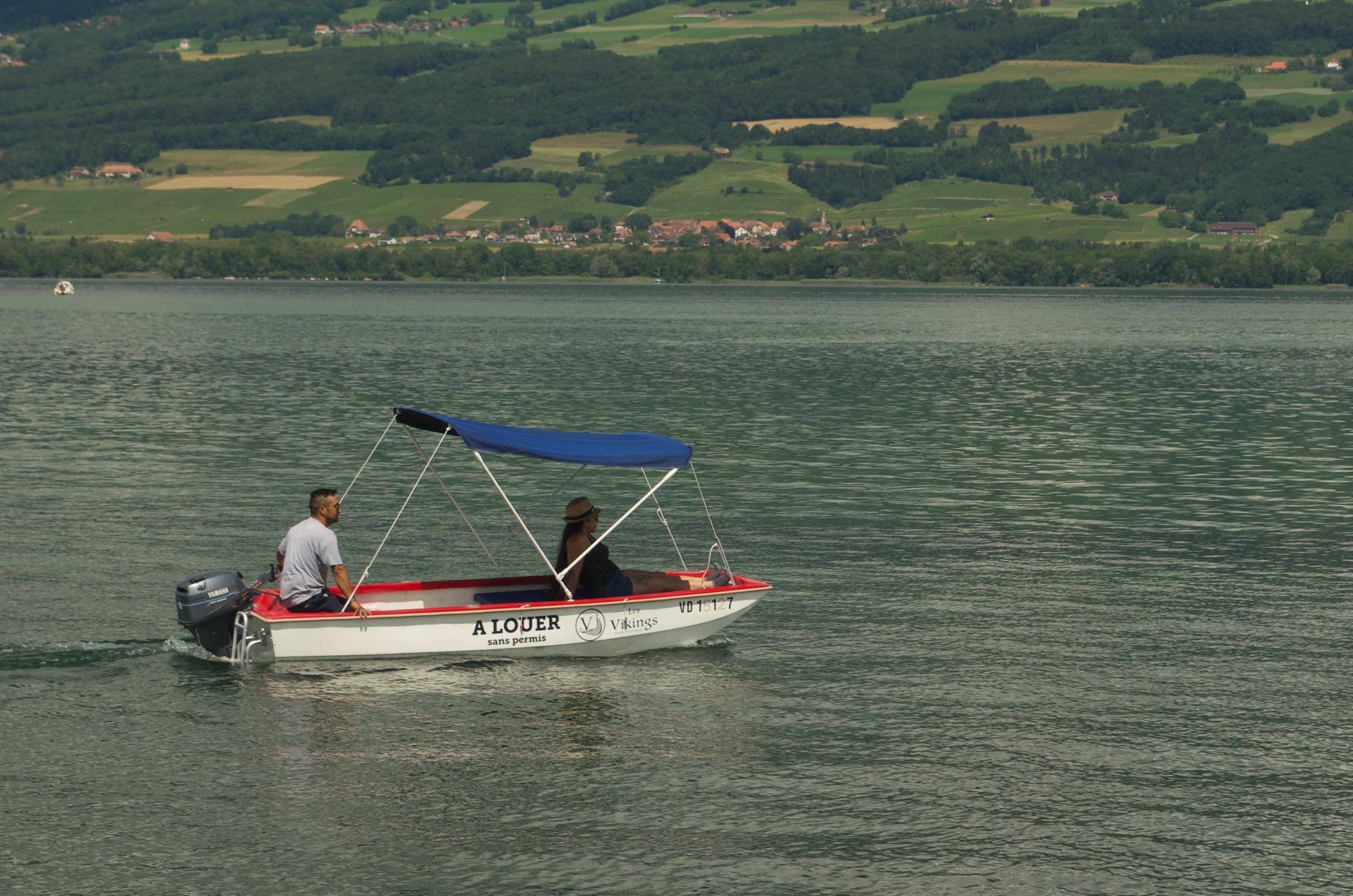 Pour 4 personnes, barque à moteur idéale pour le farniente ou la pêche, avec échelle de bain.
